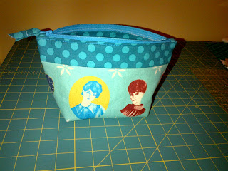After a mostly dreary day, I decided to sew up a little makeup bag. I've needed one for a while and I've got two or three patterns to try. So I tried the first pattern, and made this little bag. I used a line I like with retro images, it's called "Ruby Star Rising". The bag turned out okay, but it's not perfect, I don't like the way it's finished on the inside.